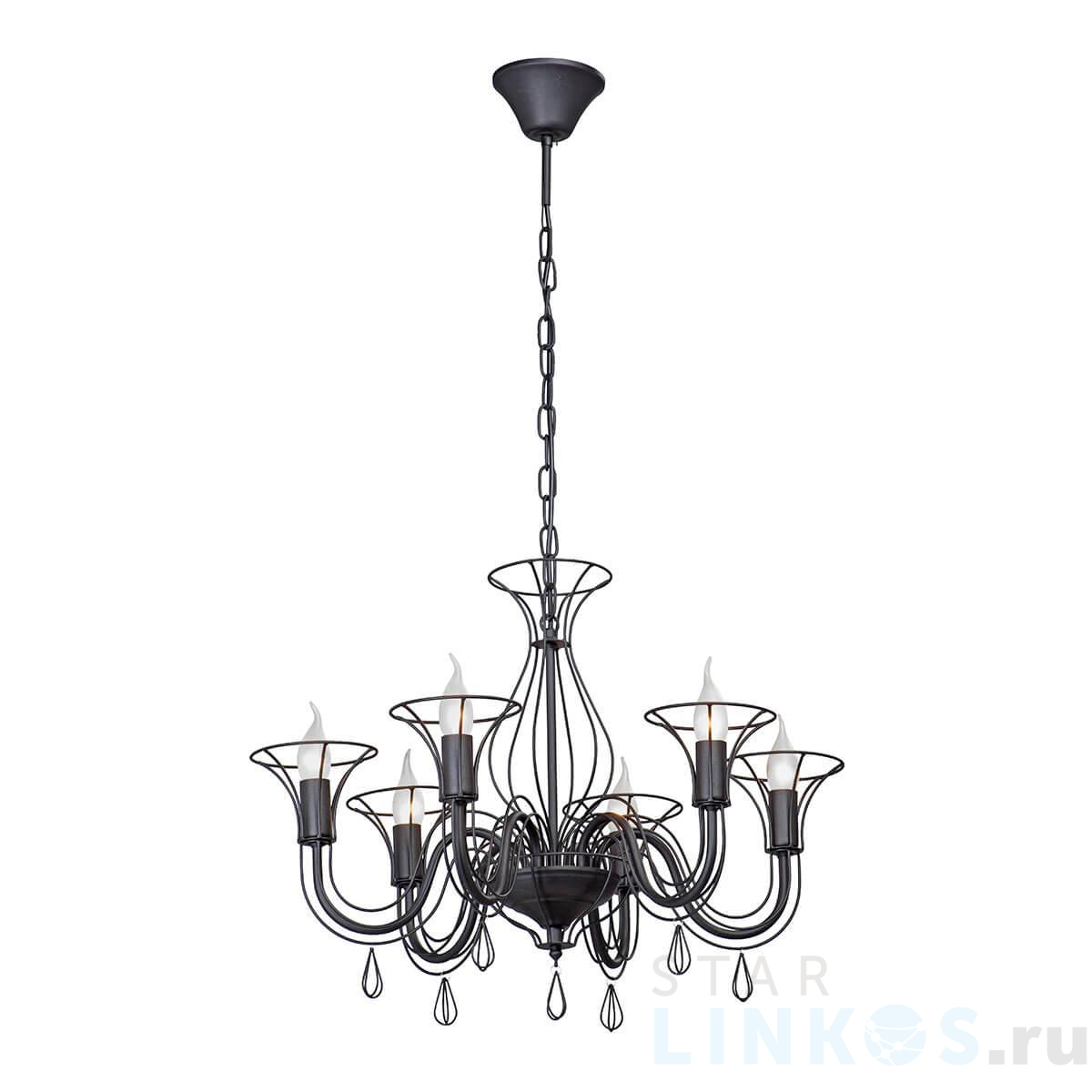 Поставщик рекомендует использовать лампы накаливания с цоколем E14 для освещения площади 13,3 м2. Подвесная люстра Vitaluce V4861-1/6 в стиле арт-деко используется в интерьере гостиной с установкой на потолок.