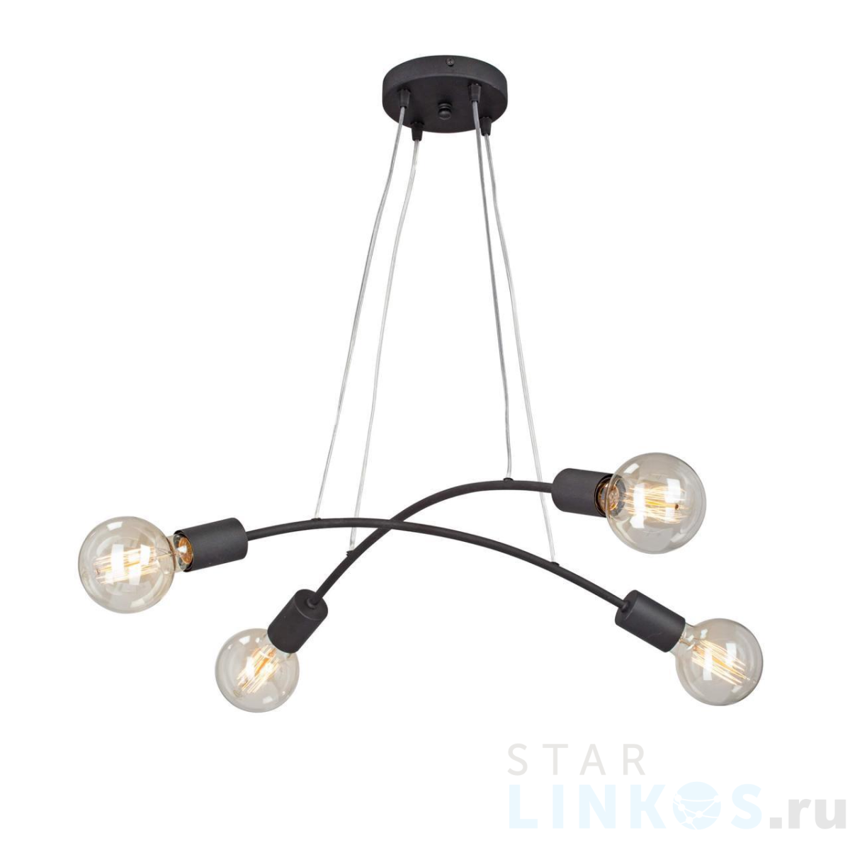 Поставщик рекомендует использовать лампы накаливания с цоколем E27 для освещения площади 12 м2. Подвесная люстра Vitaluce V4989-1/4S в стиле лофт используется в интерьере гостиной с установкой на потолок.