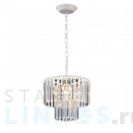 Поставщик рекомендует использовать лампы накаливания с цоколем E14 для освещения площади 8,9 м2. Подвесная люстра Vitaluce V5179-0/4 в стиле прованс используется в интерьере гостиной с установкой на потолок.