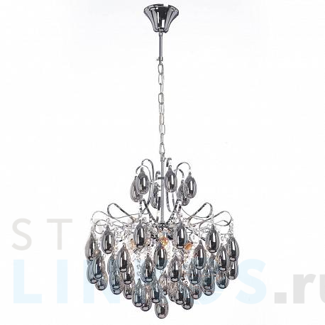Поставщик рекомендует использовать лампы накаливания с цоколем E14 для освещения площади 13,3 м2. Подвесная люстра Vitaluce V5332/6 в стиле прованс используется в интерьере гостиной с установкой на потолок.