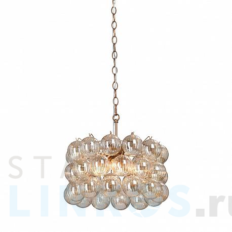 Поставщик рекомендует использовать лампы накаливания с цоколем E14 для освещения площади 13,3 м2. Подвесная люстра Vitaluce V5347-8/6 в стиле прованс используется в интерьере гостиной с установкой на потолок.