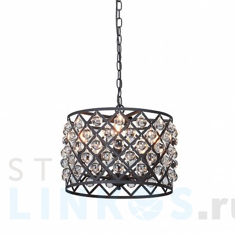 Поставщик рекомендует использовать лампы накаливания с цоколем E14 для освещения площади 15 м2. Подвесная люстра Vitaluce V5351-1/5 в стиле арт-деко используется в интерьере гостиной с установкой на потолок.