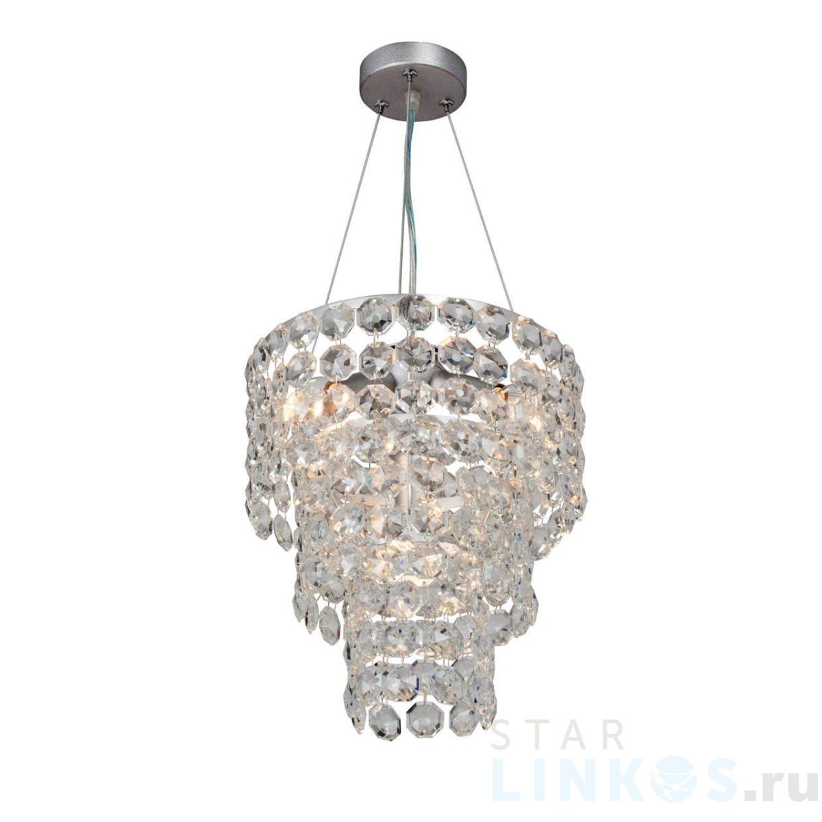 Поставщик рекомендует использовать лампы накаливания с цоколем E14 для освещения площади 12 м2. Подвесная люстра Vitaluce V5355-9/4 в используется в интерьере гостиной с установкой на потолок.