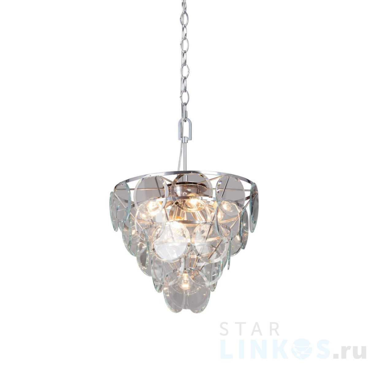 Поставщик рекомендует использовать лампы накаливания с цоколем E14 для освещения площади 30 м2. Подвесная люстра Vitaluce V5834-9/10 в используется в интерьере гостиной с установкой на потолок.