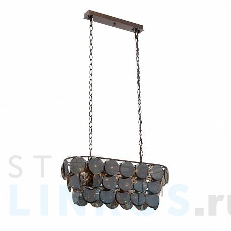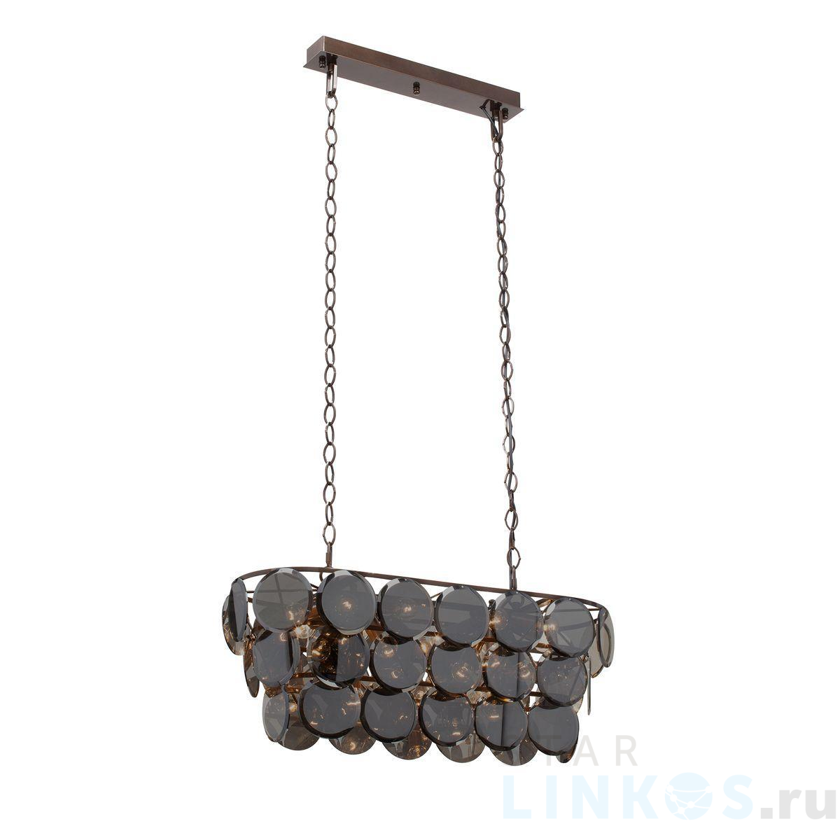Поставщик рекомендует использовать лампы накаливания с цоколем E14 для освещения площади 54 м2. Подвесная люстра Vitaluce V5850-7/18 в используется в интерьере больших залов с установкой на потолок.