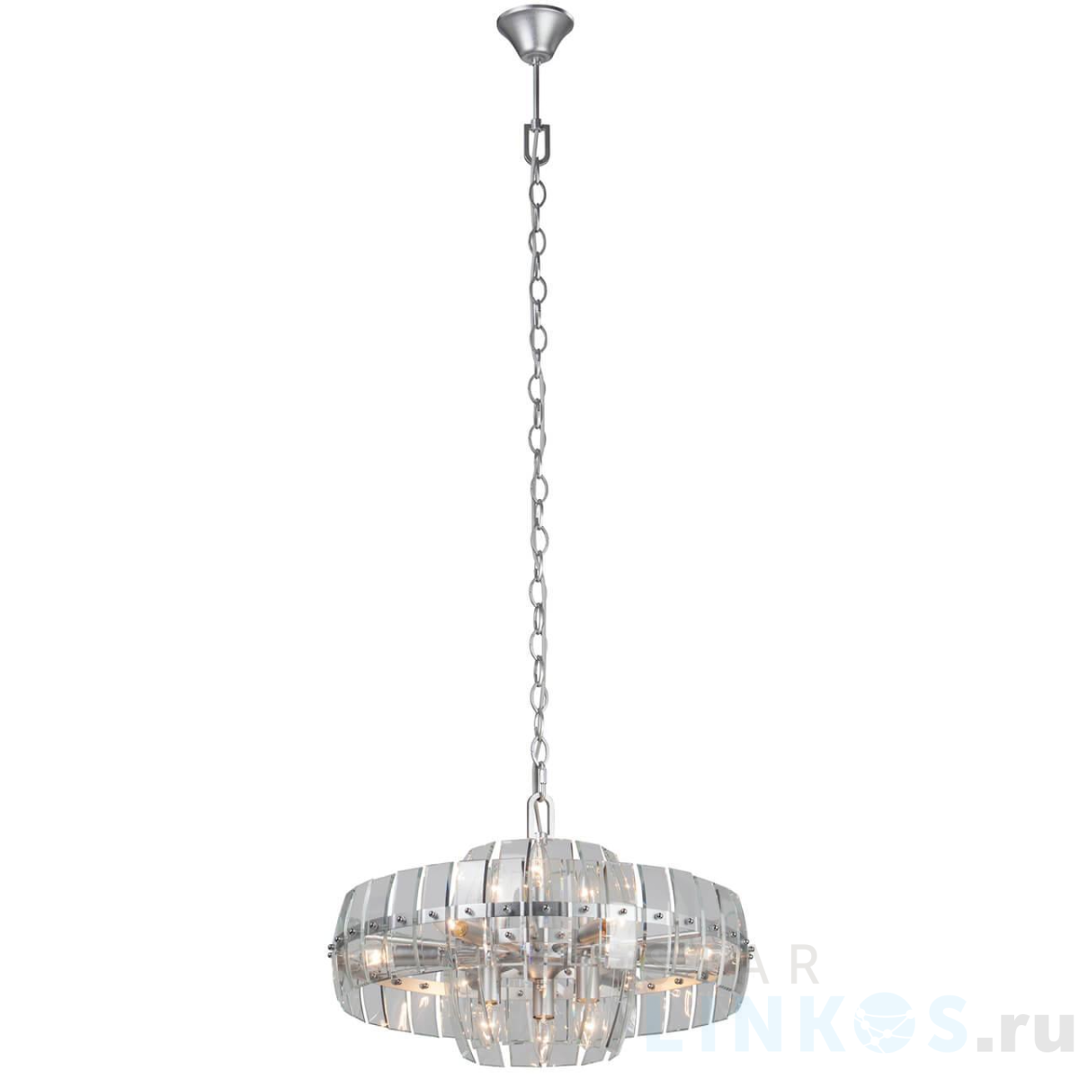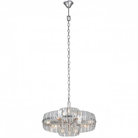 Поставщик рекомендует использовать лампы накаливания с цоколем E14 для освещения площади 26,7 м2. Подвесная люстра Vitaluce V5857-9/12 в стиле прованс используется в интерьере гостиной с установкой на потолок.