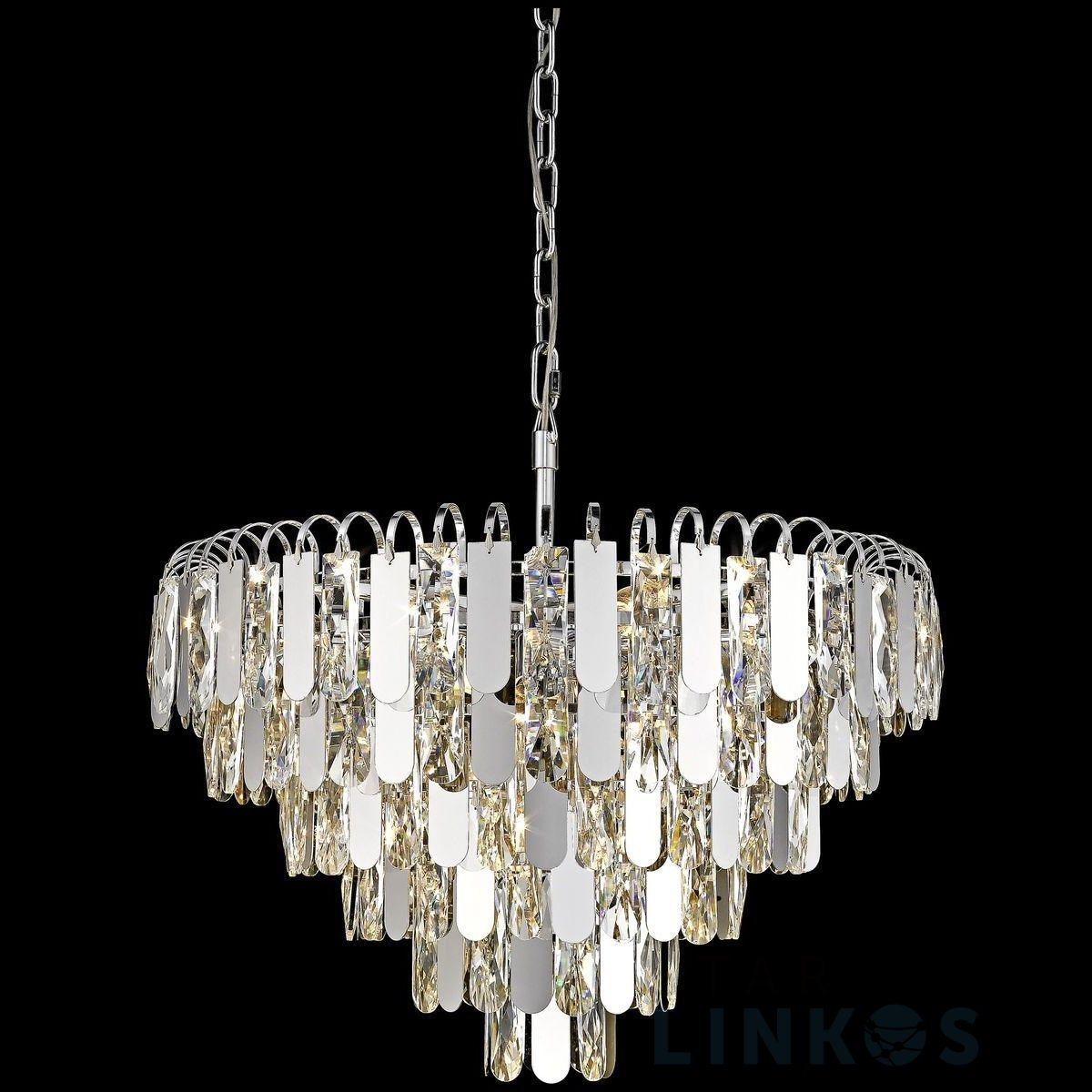 Поставщик рекомендует использовать лампы накаливания с цоколем E14 для освещения площади 35,6 м2. Подвесная люстра Wertmark Crescentia WE105.16.103 в используется в интерьере гостиной с установкой на потолок.