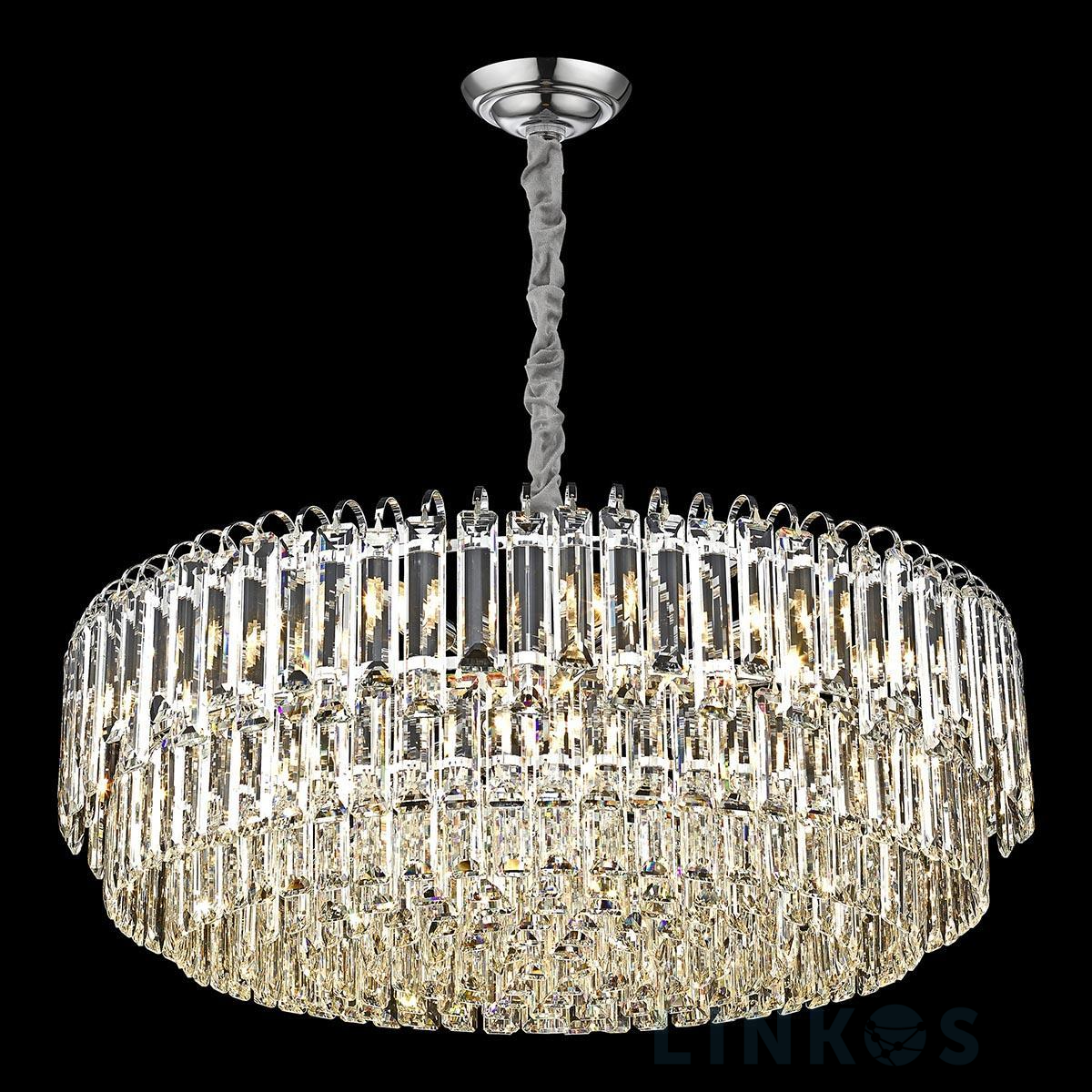 Поставщик рекомендует использовать лампы накаливания с цоколем E14 для освещения площади 40 м2. Подвесная светодиодная люстра Wertmark Krista WE130.18.103 в используется в интерьере больших залов с установкой на потолок.