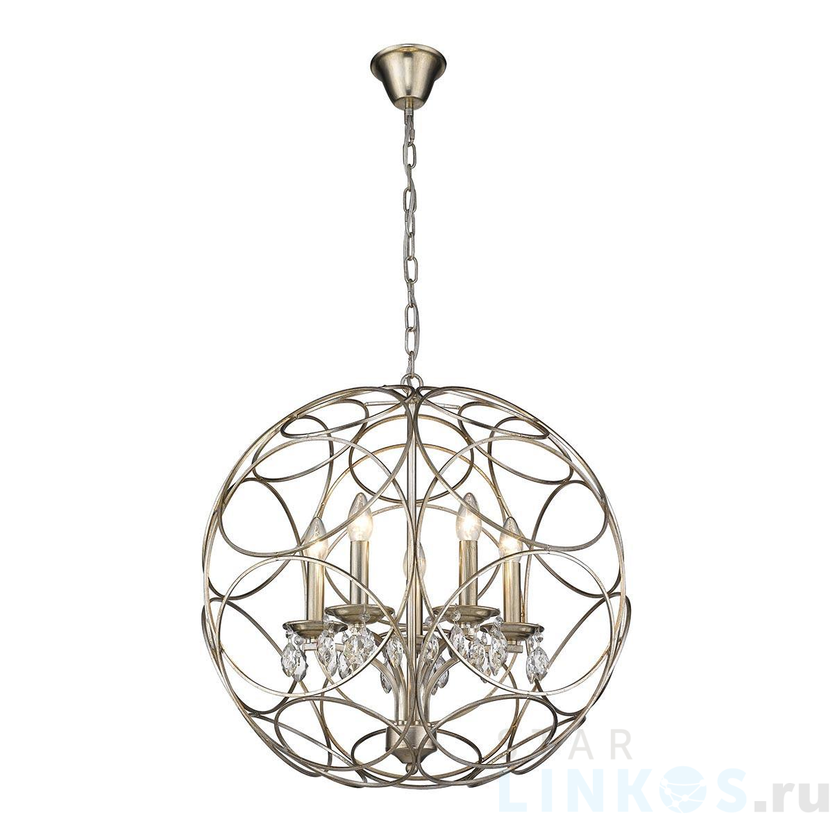 Поставщик рекомендует использовать лампы накаливания с цоколем E14 для освещения площади 11,1 м2. Подвесная люстра Wertmark Senta WE305.05.203 в стиле арт-деко используется в интерьере спальни с установкой на потолок.