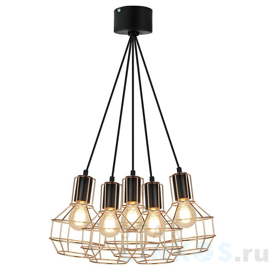 Поставщик рекомендует использовать лампы накаливания с цоколем E27. Подвесная люстра Zumaline Giulio P12105-L-5 в стиле лофт используется в интерьере гостиной с установкой на потолок.