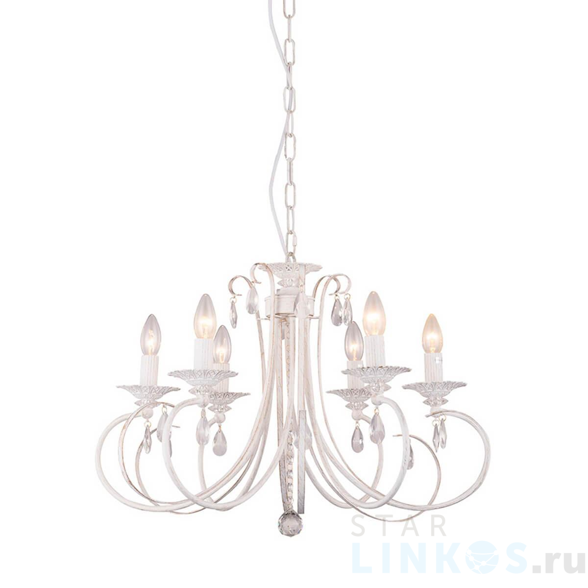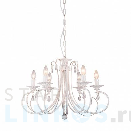 Поставщик рекомендует использовать лампы накаливания с цоколем E14. Подвесная люстра Zumaline Novia RLD94217-6A в стиле прованс используется в интерьере гостиной с установкой на потолок.