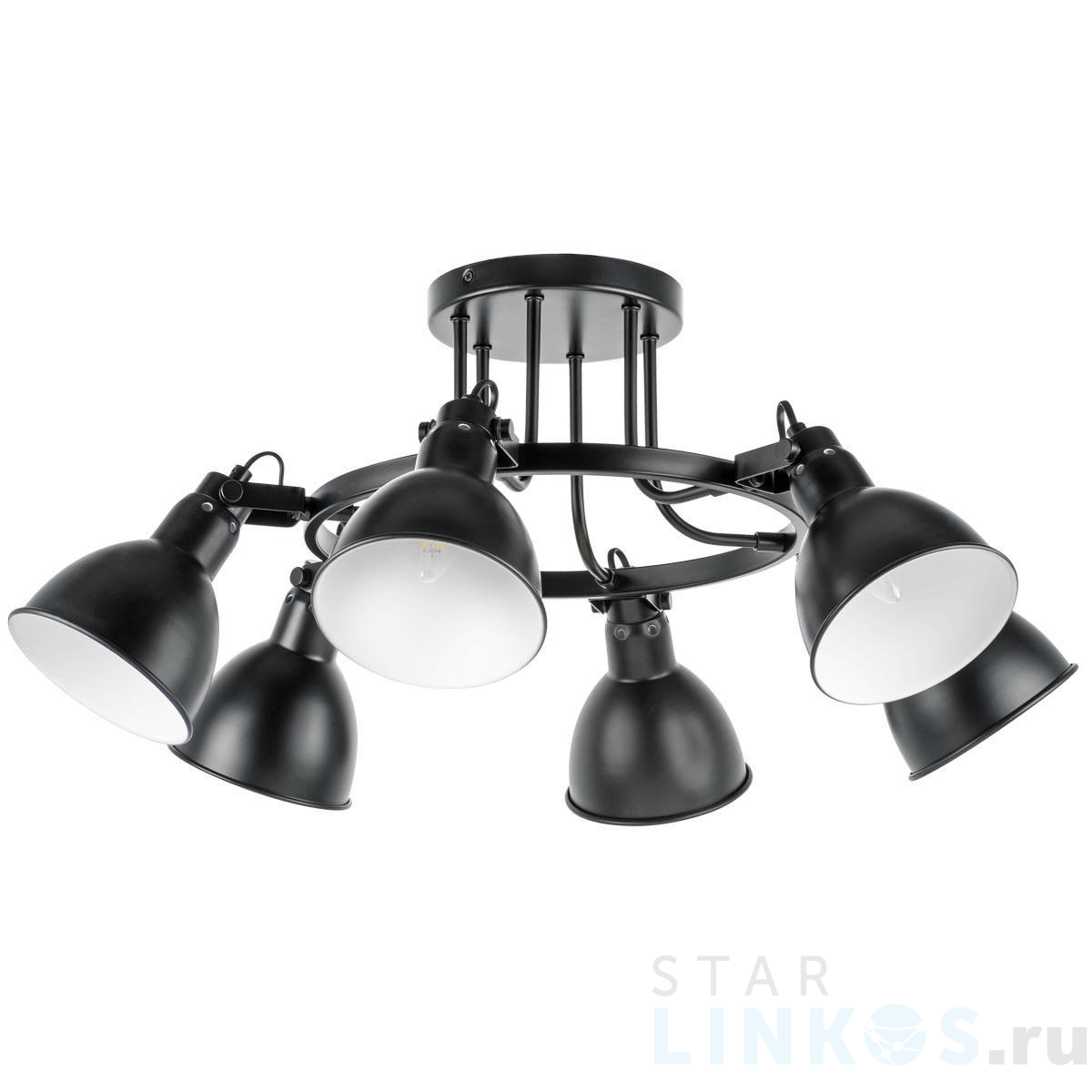 Поставщик рекомендует использовать лампы накаливания с цоколем E14 для освещения площади 13,3 м2. Потолочная люстра Lightstar Acrobata 761067 в стиле лофт используется в интерьере спальни с установкой на потолок.