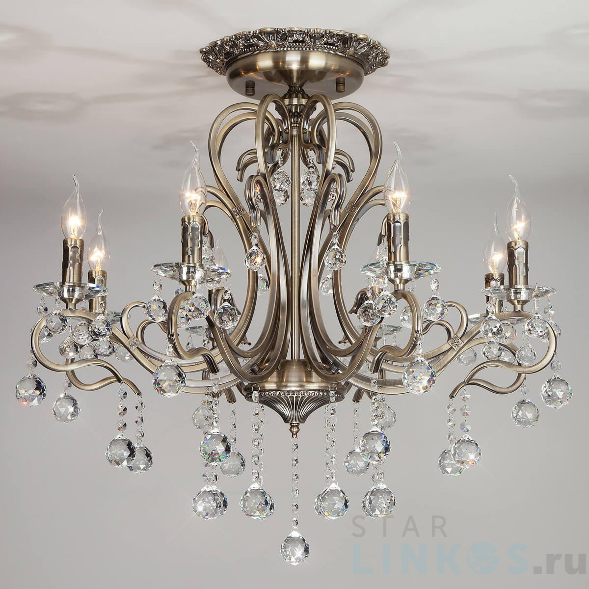Поставщик рекомендует использовать лампы накаливания с цоколем E14. Подвесная люстра Eurosvet 12505/8 античная бронза Strotskis в классическом стиле используется в интерьере гостиной с установкой на потолок.