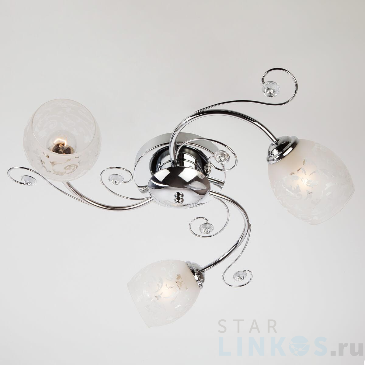 Поставщик рекомендует использовать лампы накаливания с цоколем E27. Подвесная люстра Eurosvet 9677/3 хром в современном стиле используется в интерьере кухни с установкой на потолок.