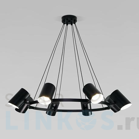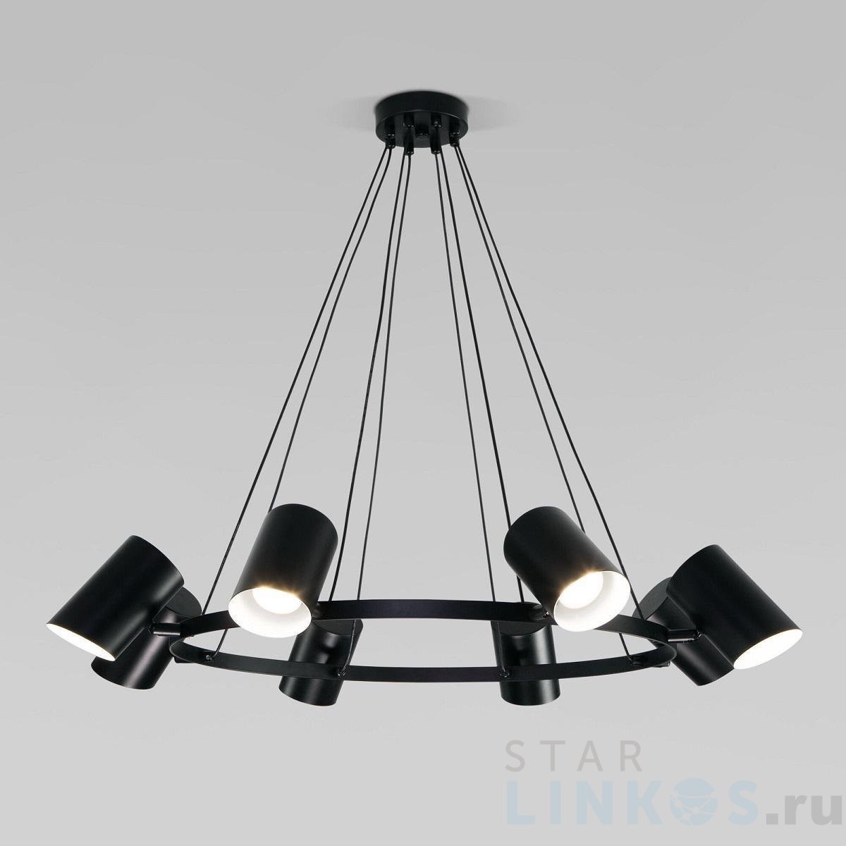 Подвесная люстра Eurosvet Splay 70147/8 черный в стиле лофт используется в интерьере гостиной с установкой на потолок.