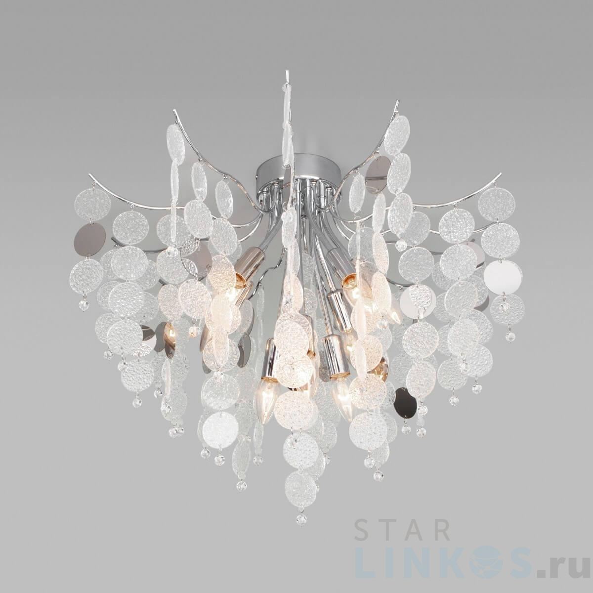Поставщик рекомендует использовать лампы накаливания с цоколем E14 для освещения площади 30 м2. Потолочная люстра Bogates Bolla 334/9 Smart в стиле арт-деко используется в интерьере гостиной с установкой на потолок.