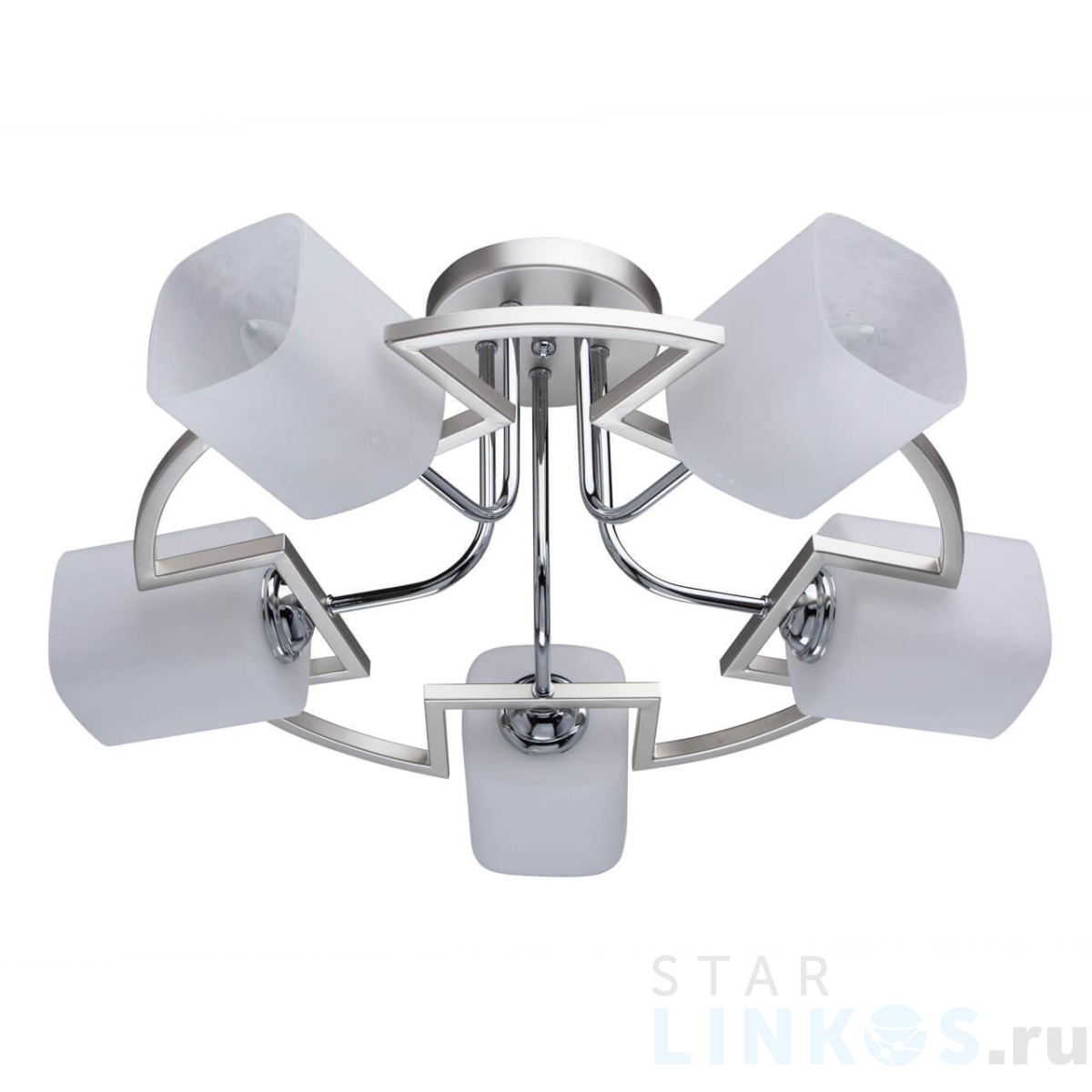 Поставщик рекомендует использовать лампы накаливания с цоколем E14 для освещения площади 17 м2. Потолочная люстра De Markt Тетро 673011605 в современном стиле используется в интерьере спальни с установкой на потолок.