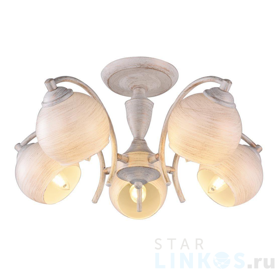 Поставщик рекомендует использовать лампы накаливания с цоколем E27 для освещения площади 11,1 м2. Потолочная люстра Escada 650/5PL в стиле прованс используется в интерьере спальни с установкой на потолок.