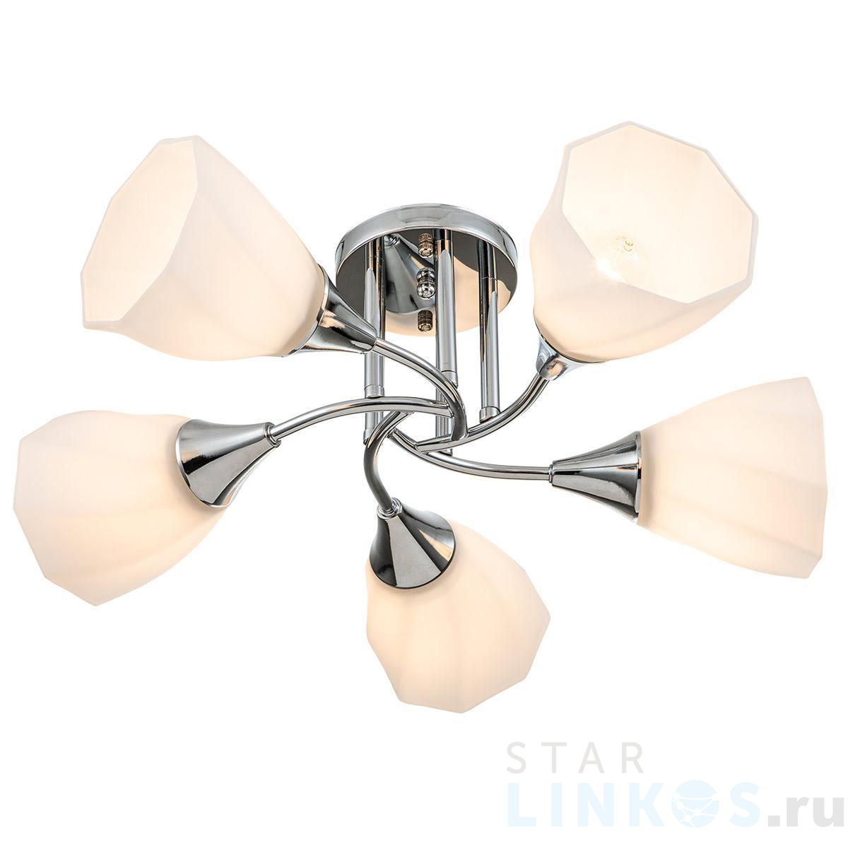Поставщик рекомендует использовать лампы накаливания с цоколем E27 для освещения площади 10 м2. Потолочная люстра Escada Camellia 664/5P в используется в интерьере спальни с установкой на потолок.
