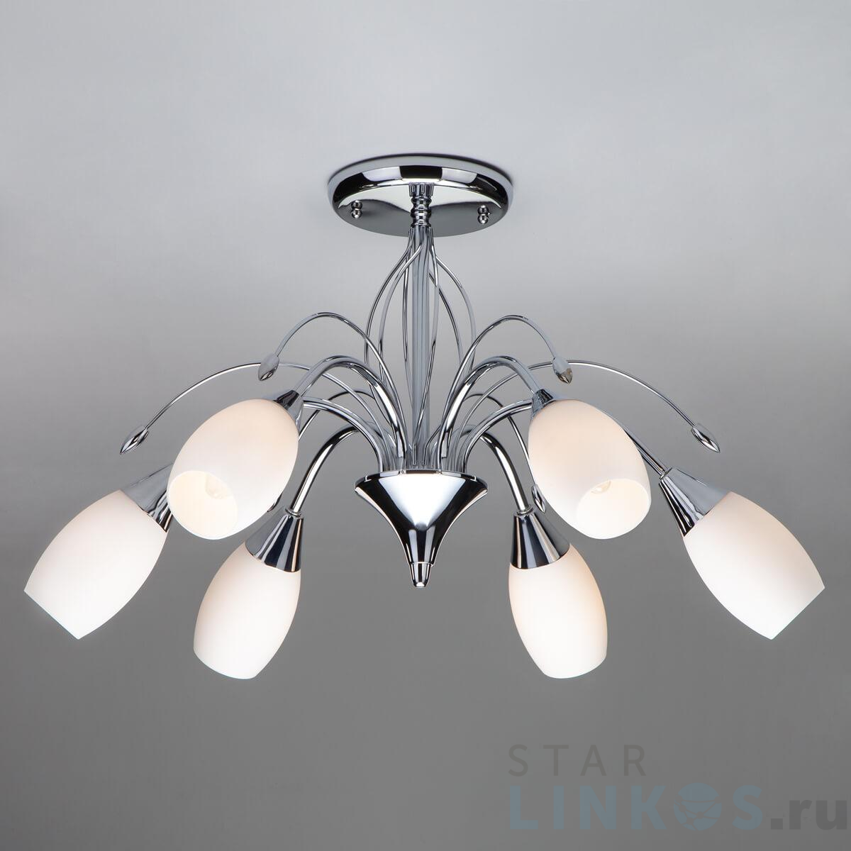 Поставщик рекомендует использовать лампы накаливания с цоколем E14. Потолочная люстра Eurosvet 22080/6 хром в используется в интерьере гостиной с установкой на потолок.