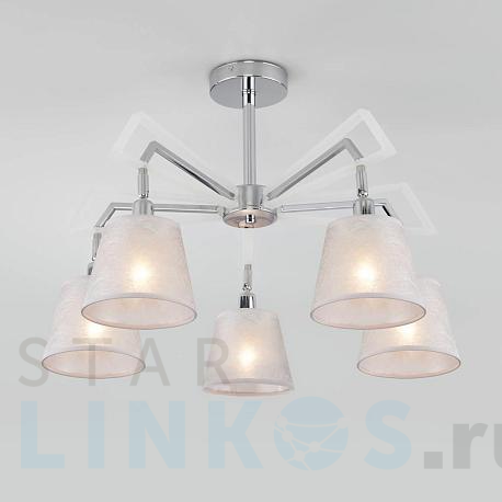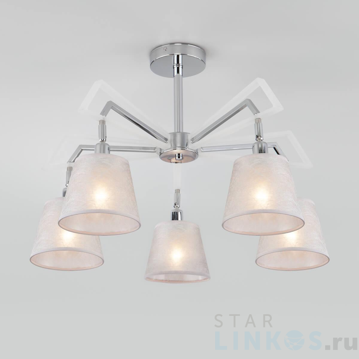 Поставщик рекомендует использовать лампы накаливания с цоколем E14. Потолочная люстра Eurosvet 60082/5 хром в используется в интерьере спальни с установкой на потолок.