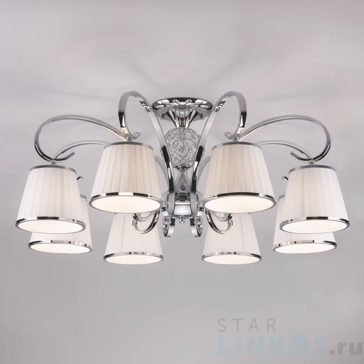 Поставщик рекомендует использовать лампы накаливания с цоколем E14. Потолочная люстра Eurosvet 60088/8 хром в используется в интерьере гостиной с установкой на потолок.