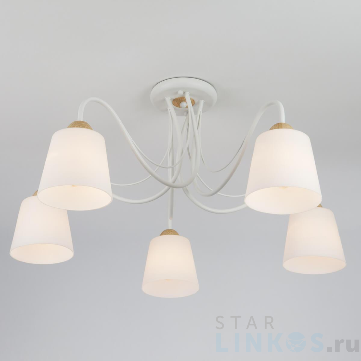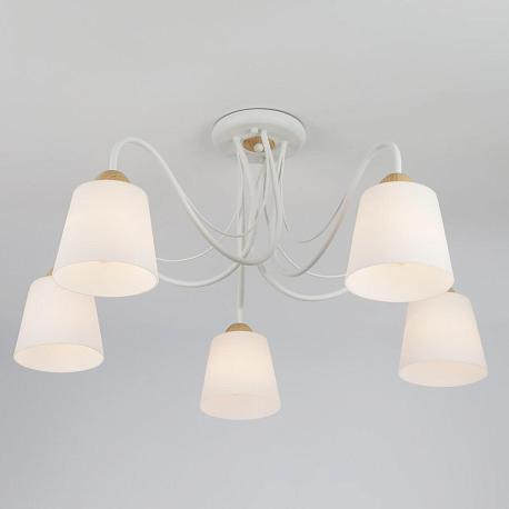 Поставщик рекомендует использовать лампы накаливания с цоколем E27. Потолочная люстра Eurosvet 70062/5 белый в современном стиле используется в интерьере спальни с установкой на потолок.