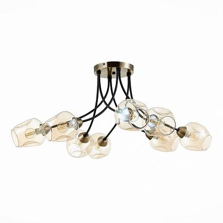 Поставщик рекомендует использовать лампы накаливания с цоколем E14 для освещения площади 16 м2. Потолочная люстра Evoluce Besano SLE205302-08 в используется в интерьере гостиной с установкой на потолок.