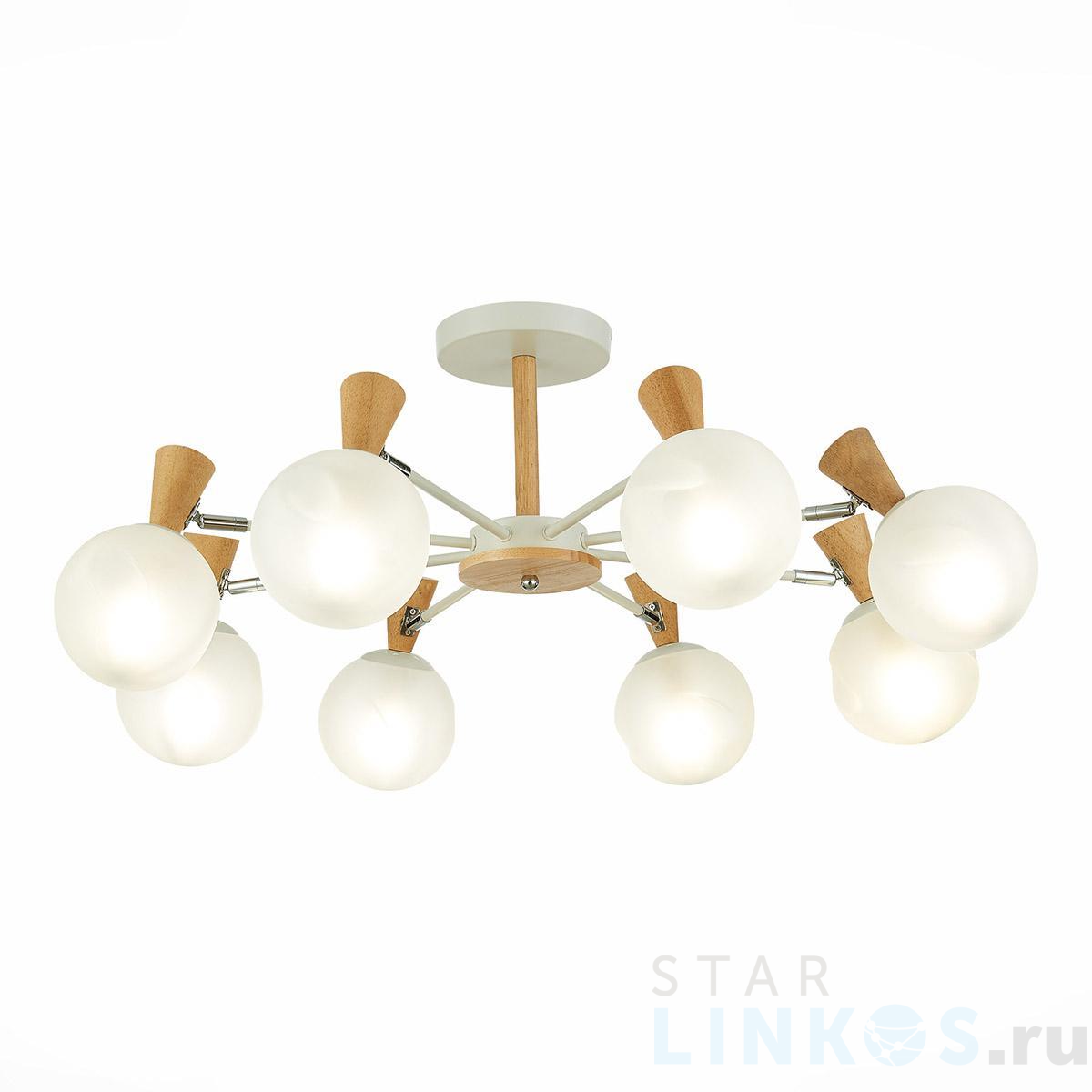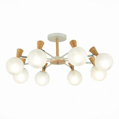 Поставщик рекомендует использовать лампы накаливания с цоколем E14 для освещения площади 16 м2. Потолочная люстра Evoluce Catania SLE220702-08 в используется в интерьере спальни с установкой на потолок.