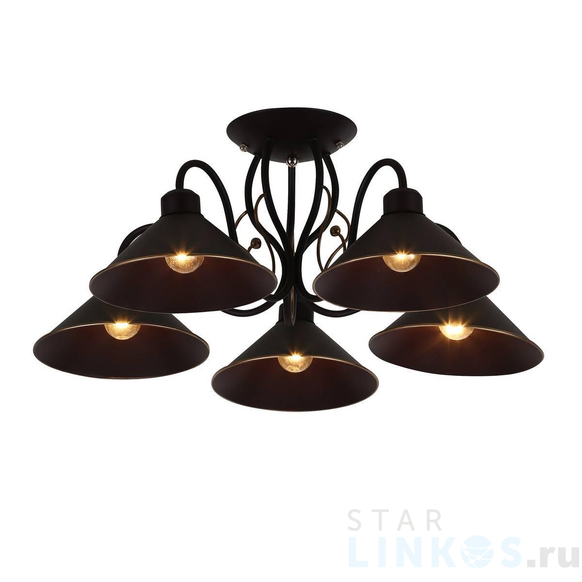 Поставщик рекомендует использовать лампы накаливания с цоколем E27 для освещения площади 11,1 м2. Потолочная люстра Evoluce Ciolla SLE120402-05 в стиле лофт используется в интерьере гостиной с установкой на потолок.