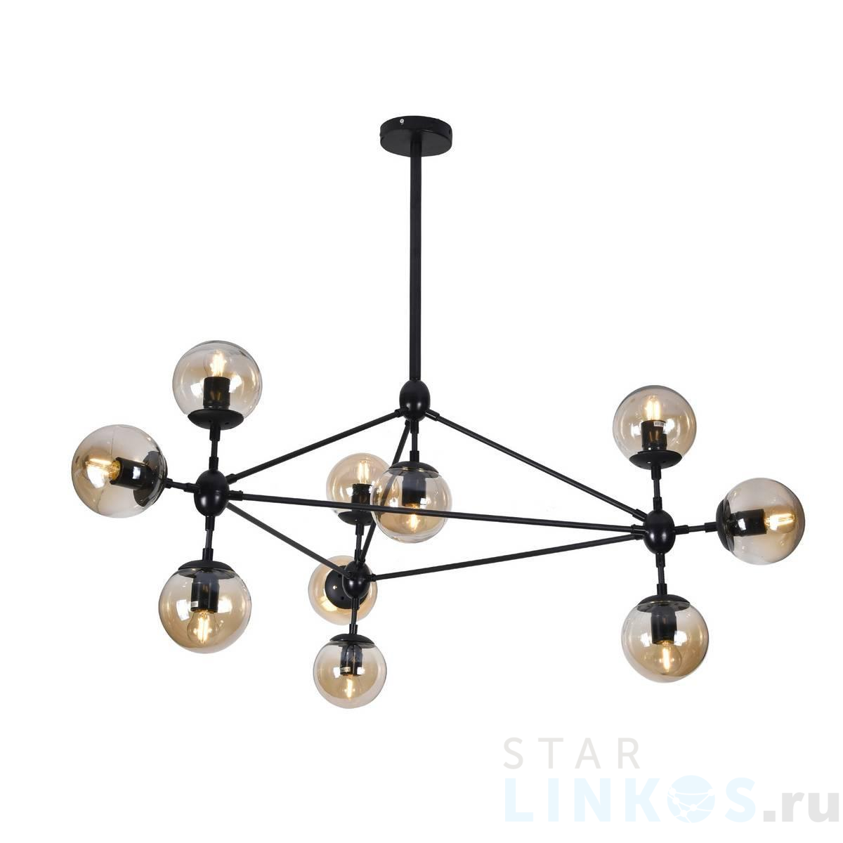Поставщик рекомендует использовать лампы накаливания с цоколем E27 для освещения площади 22,2 м2. Потолочная люстра Evoluce Lacotta SLE154903-10 в стиле лофт используется в интерьере гостиной с установкой на потолок.