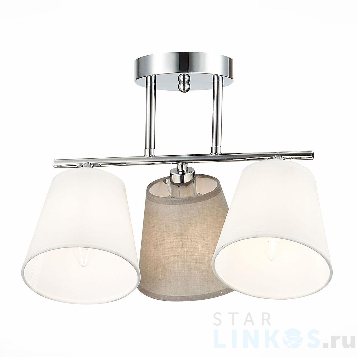 Поставщик рекомендует использовать лампы накаливания с цоколем E14 для освещения площади 6 м2. Потолочная люстра Evoluce Prato SLE300402-03 в современном стиле используется в интерьере спальни с установкой на потолок.