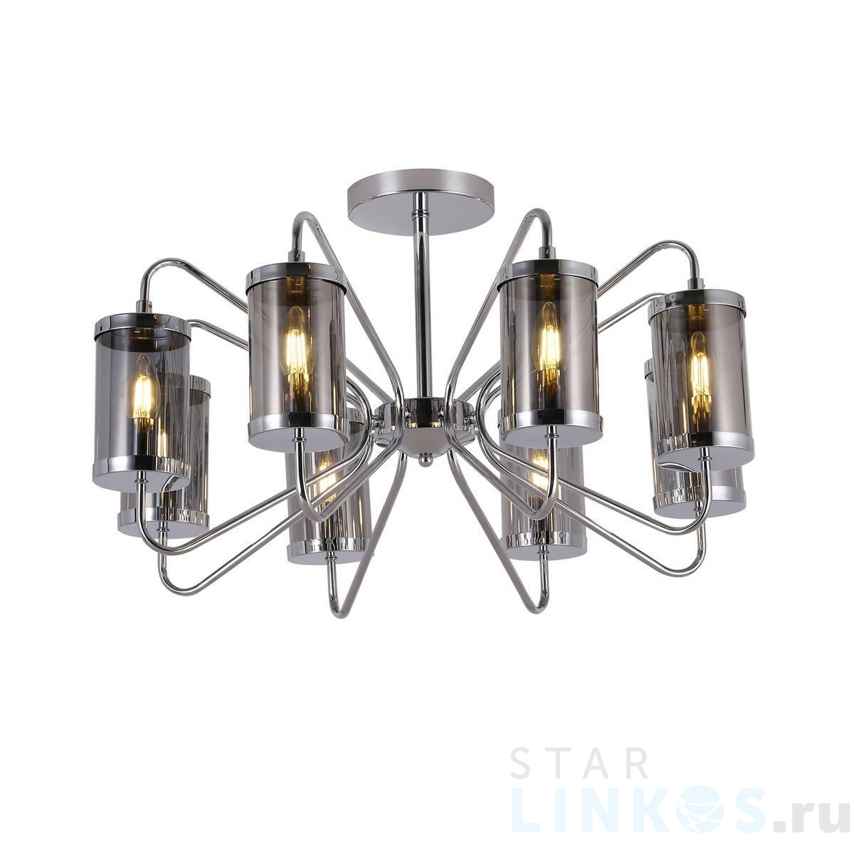 Поставщик рекомендует использовать лампы накаливания с цоколем E14 для освещения площади 17,8 м2. Потолочная люстра Evoluce Valieri SLE102302-08 в используется в интерьере гостиной с установкой на потолок.