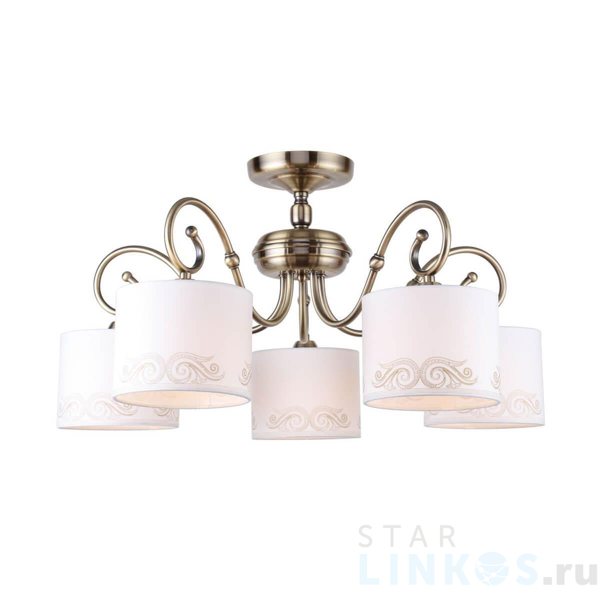 Поставщик рекомендует использовать лампы накаливания с цоколем E14 для освещения площади 11,1 м2. Потолочная люстра F-Promo Romani 2198-5U в классическом стиле используется в интерьере спальни с установкой на потолок.