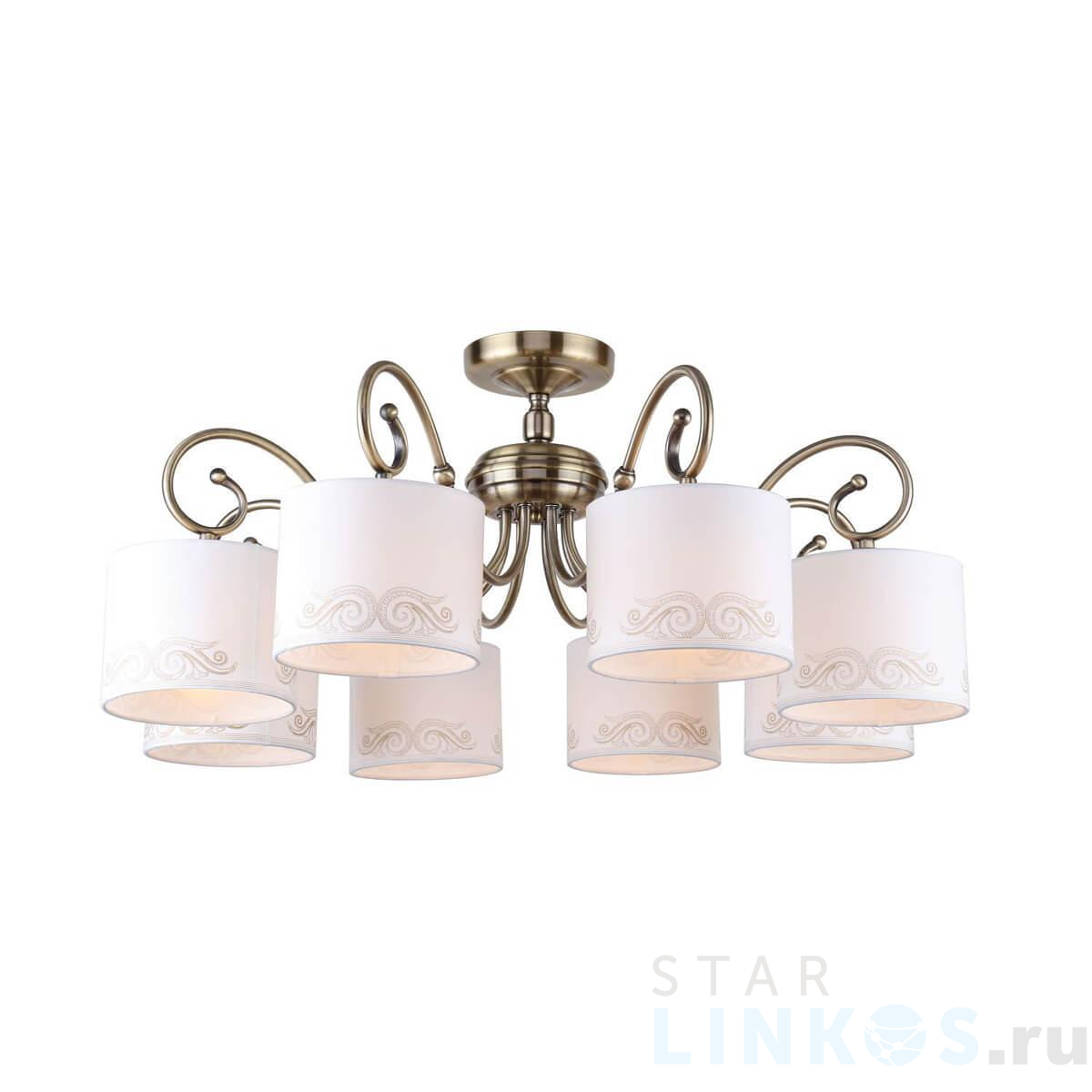 Поставщик рекомендует использовать лампы накаливания с цоколем E14 для освещения площади 17,8 м2. Потолочная люстра F-Promo Romani 2198-8U в классическом стиле используется в интерьере гостиной с установкой на потолок.