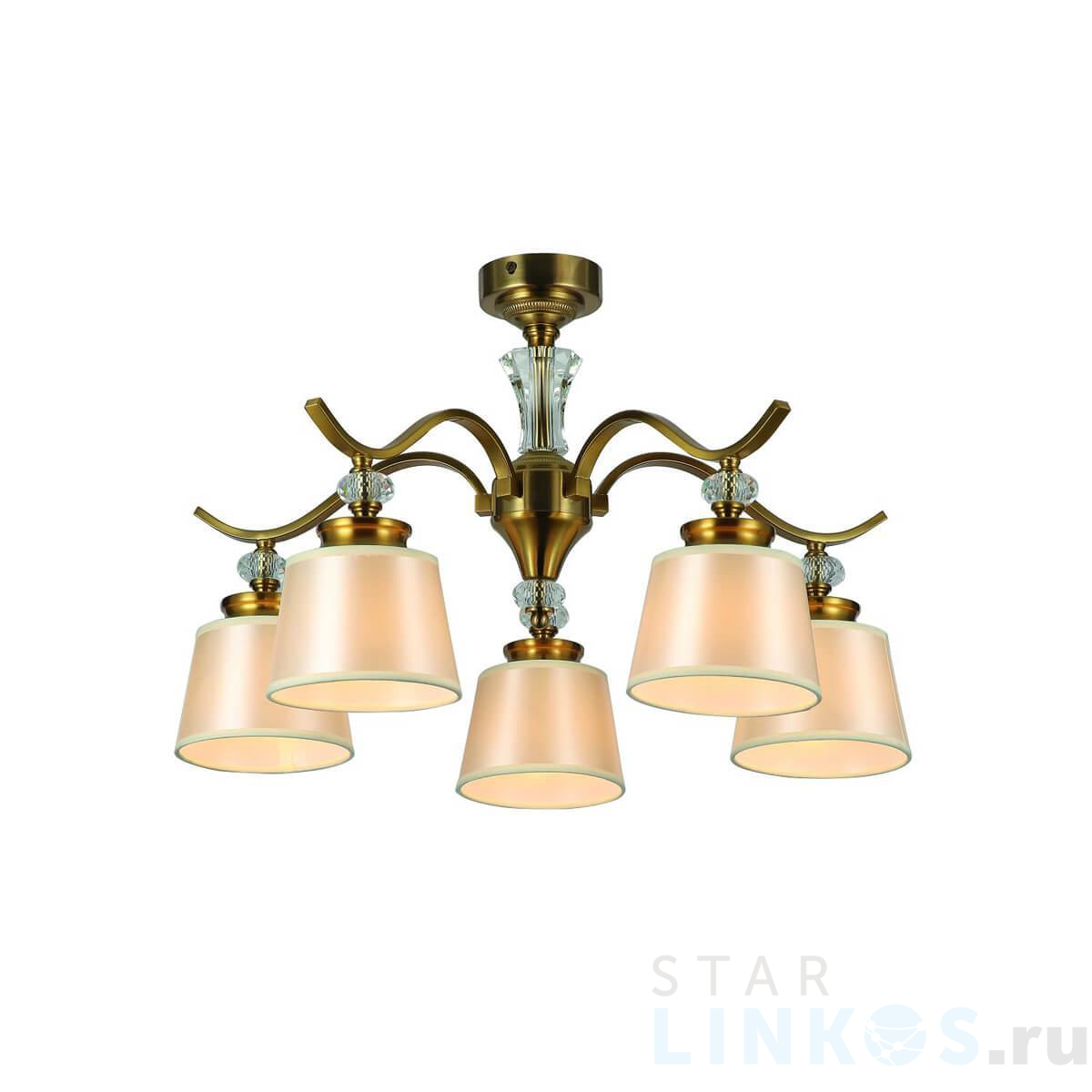 Поставщик рекомендует использовать лампы накаливания с цоколем E27 для освещения площади 11,1 м2. Потолочная люстра F-Promo Unitas 2853-5P в используется в интерьере спальни с установкой на потолок.