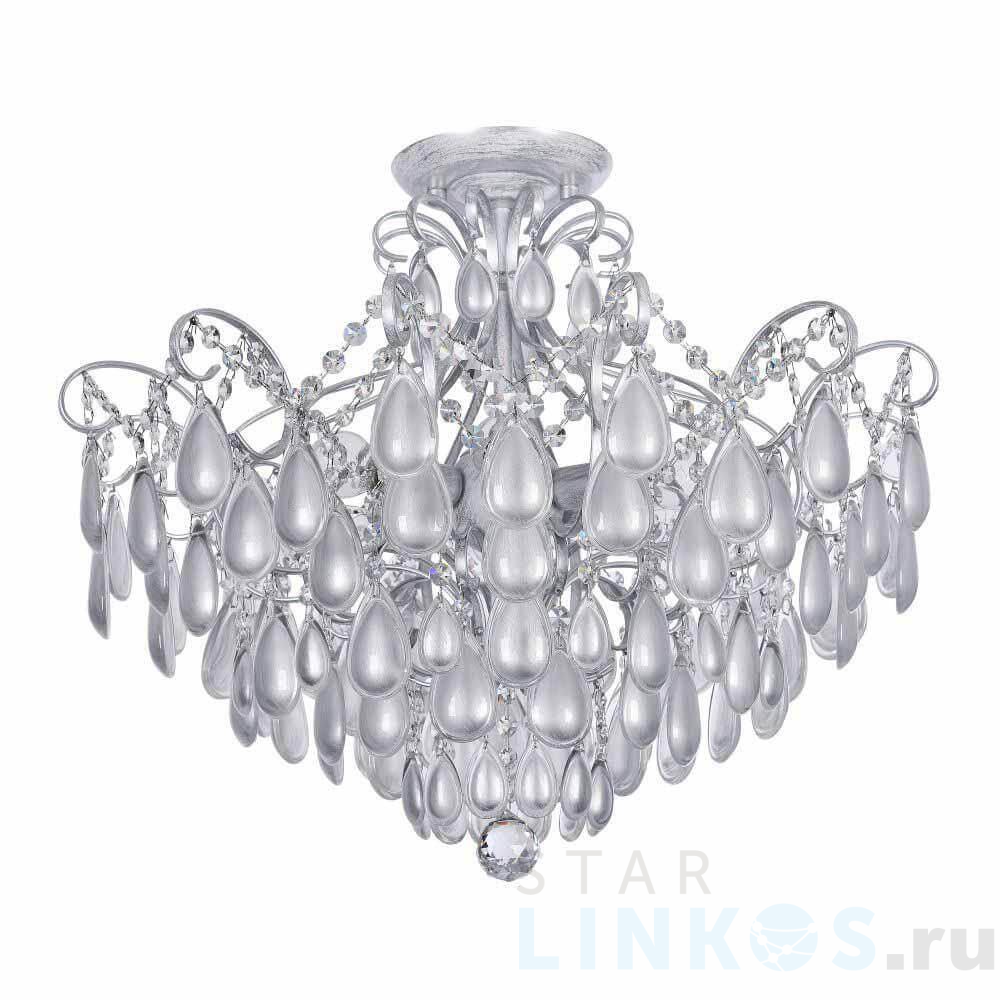 Поставщик рекомендует использовать лампы накаливания с цоколем E14 для освещения площади 13,3 м2. Потолочная люстра Freya Chabrol FR2302CL-06S в стиле арт-деко используется в интерьере спальни с установкой на потолок.