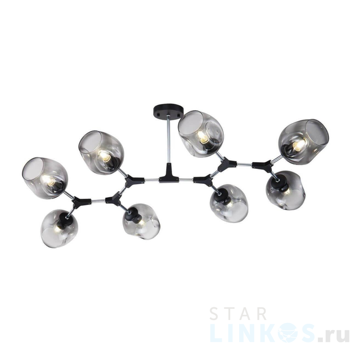 Поставщик рекомендует использовать лампы накаливания с цоколем E27 для освещения площади 26,7 м2. Потолочная люстра Freya Desi FR5006CL-08B в стиле Хай-Тек используется в интерьере гостиной с установкой на потолок.
