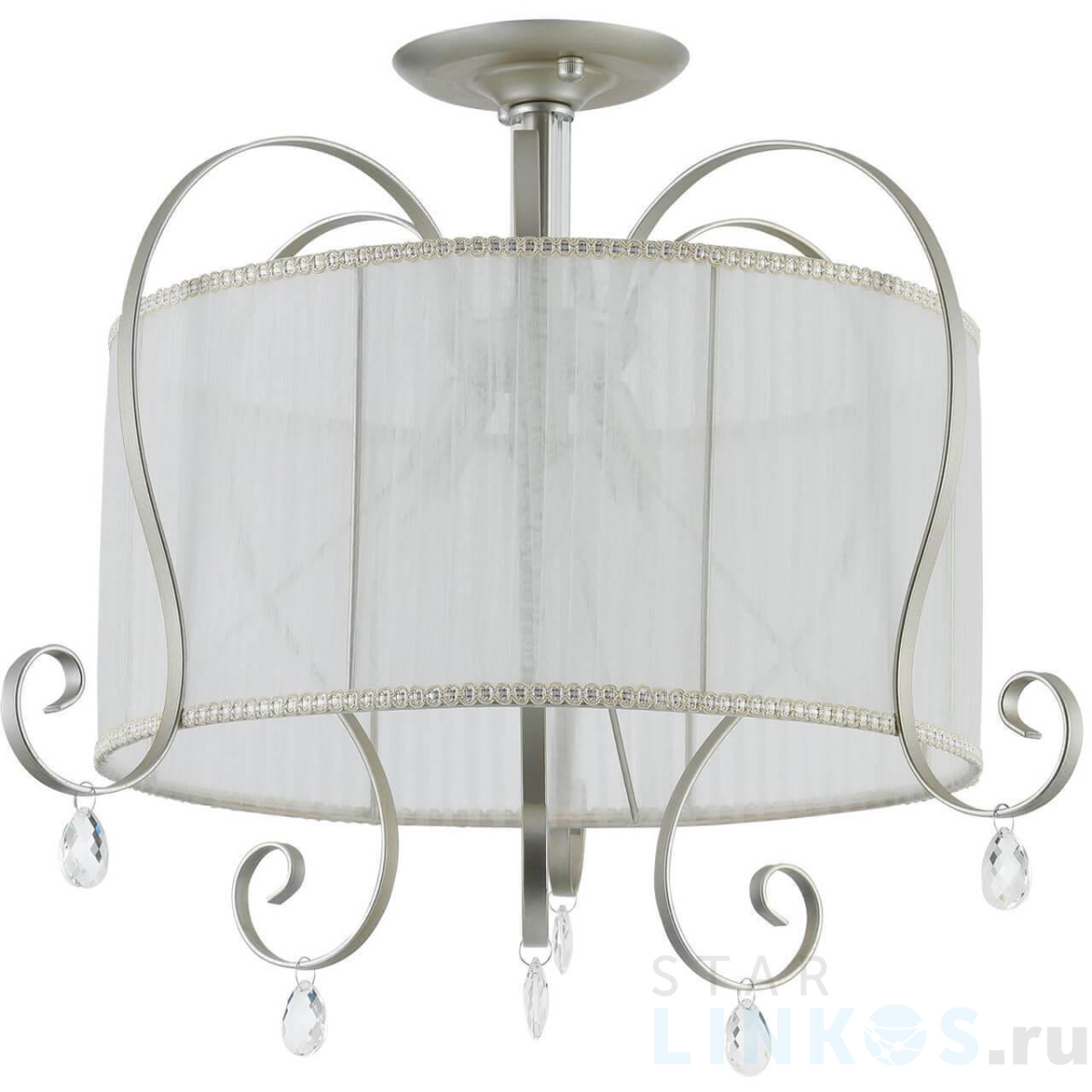 Поставщик рекомендует использовать лампы накаливания с цоколем E14 для освещения площади 6,7 м2. Потолочная люстра Freya Simone FR2020-CL-03-BG в стиле арт-деко используется в интерьере спальни с установкой на потолок.