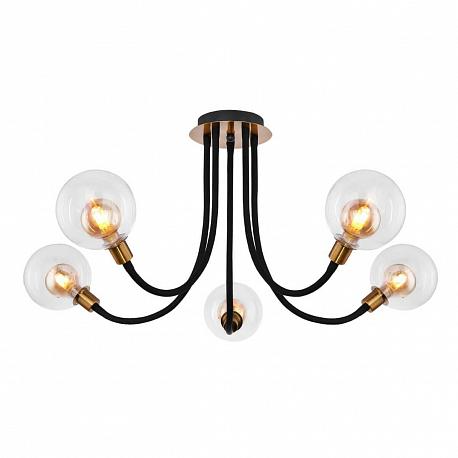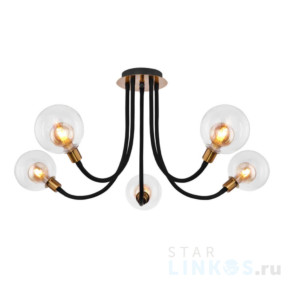 Потолочная люстра Globo Eddy 56010-5D в стиле лофт используется в интерьере спальни с установкой на потолок.