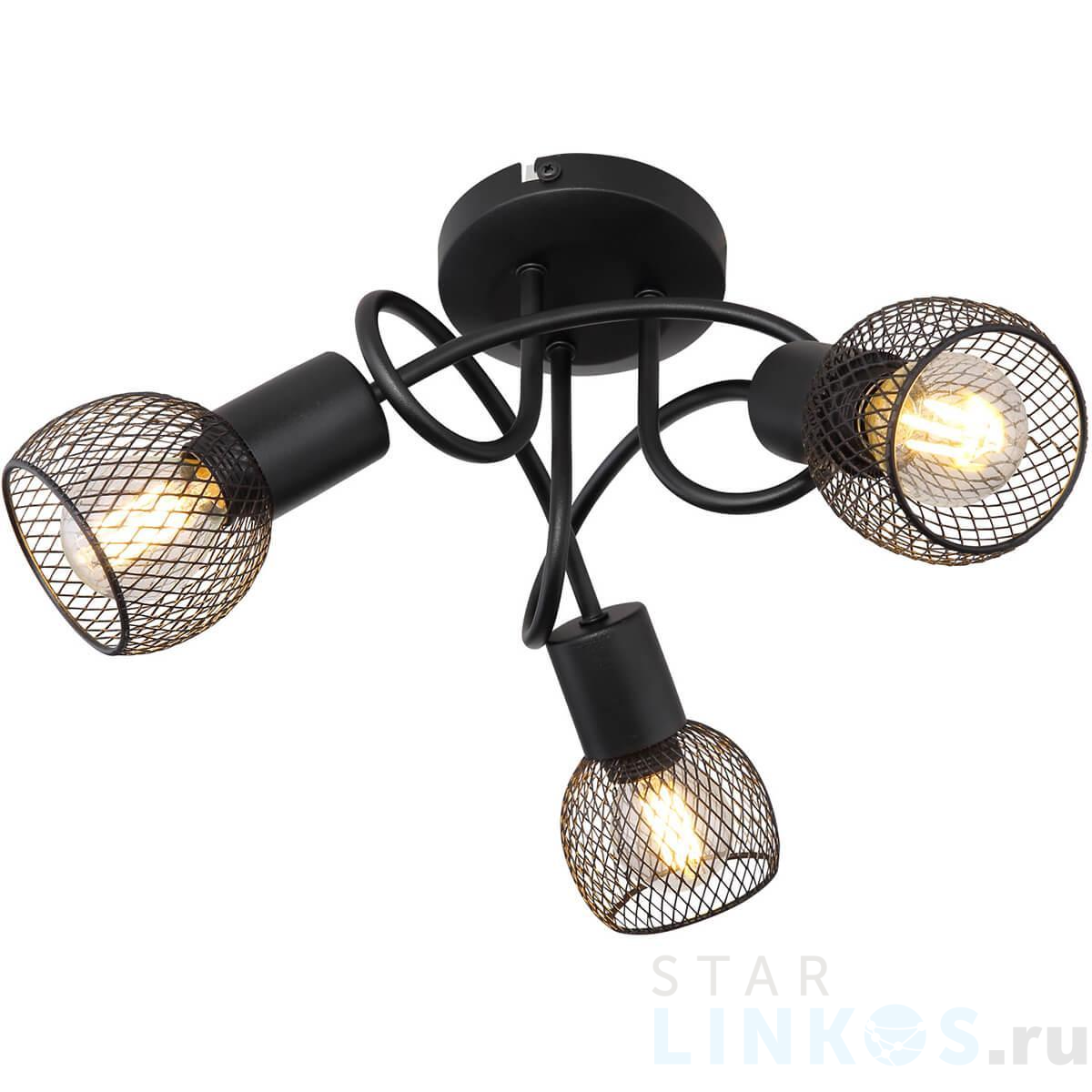 Поставщик рекомендует использовать лампы накаливания с цоколем E14 для освещения площади 6,7 м2. Потолочная люстра Globo Fiastra 54028-3S в стиле лофт используется в интерьере кухни с установкой на потолок.
