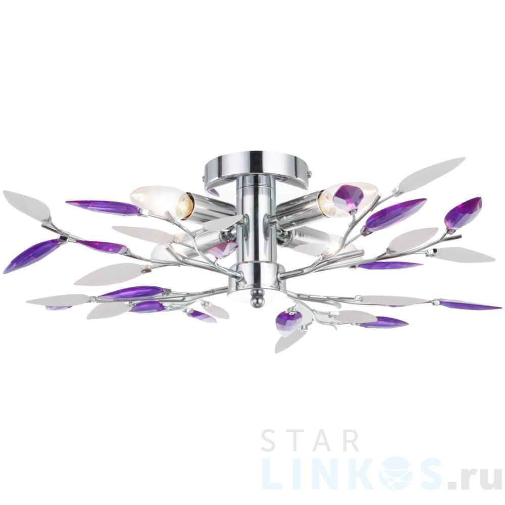 Поставщик рекомендует использовать лампы накаливания с цоколем E14 для освещения площади 8,9 м2. Потолочная люстра Globo Giuletta 63167-4 в используется в интерьере спальни с установкой на потолок.