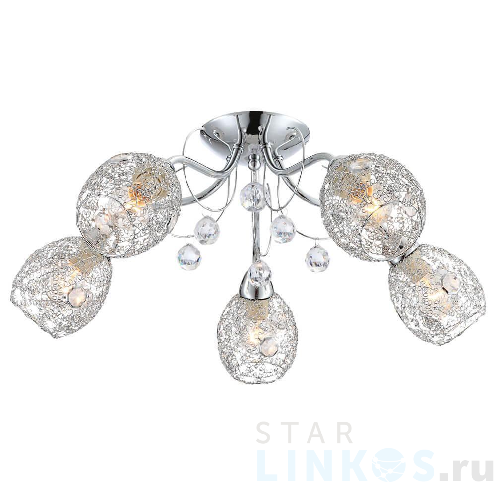 Поставщик рекомендует использовать лампы накаливания с цоколем E14 для освещения площади 11,1 м2. Потолочная люстра Globo Kordula 56689-5 в современном стиле используется в интерьере прихожей с установкой на потолок.