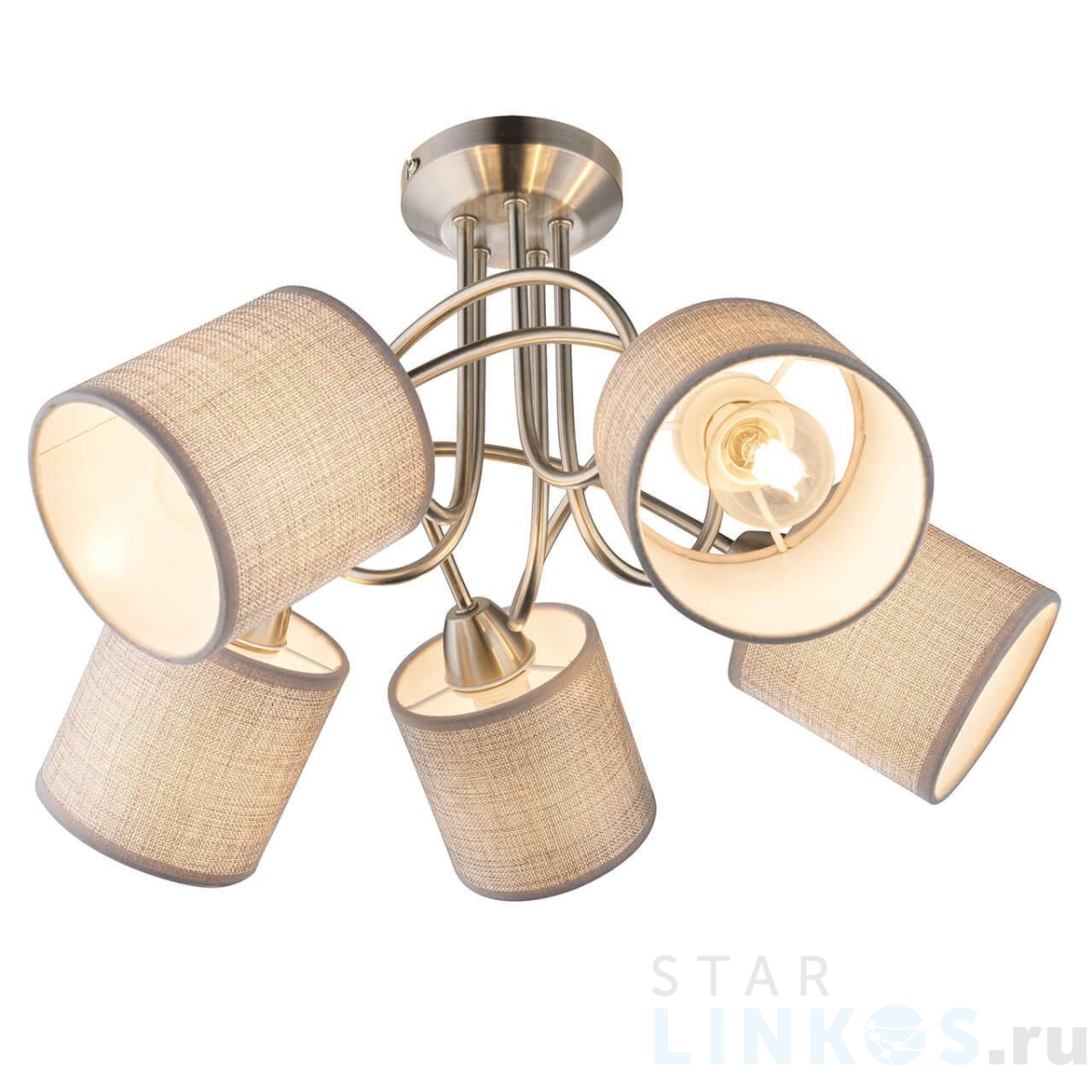 Потолочная люстра Globo Paco 15185-5D в современном стиле используется в интерьере спальни с установкой на потолок.