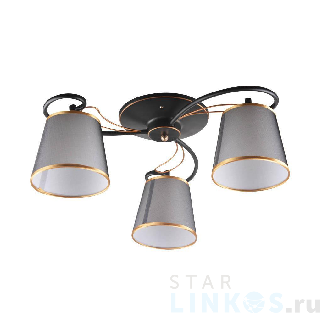 Поставщик рекомендует использовать лампы накаливания с цоколем E27 для освещения площади 10 м2. Потолочная люстра Hiper Nataly H055-3 в используется в интерьере спальни с установкой на потолок.