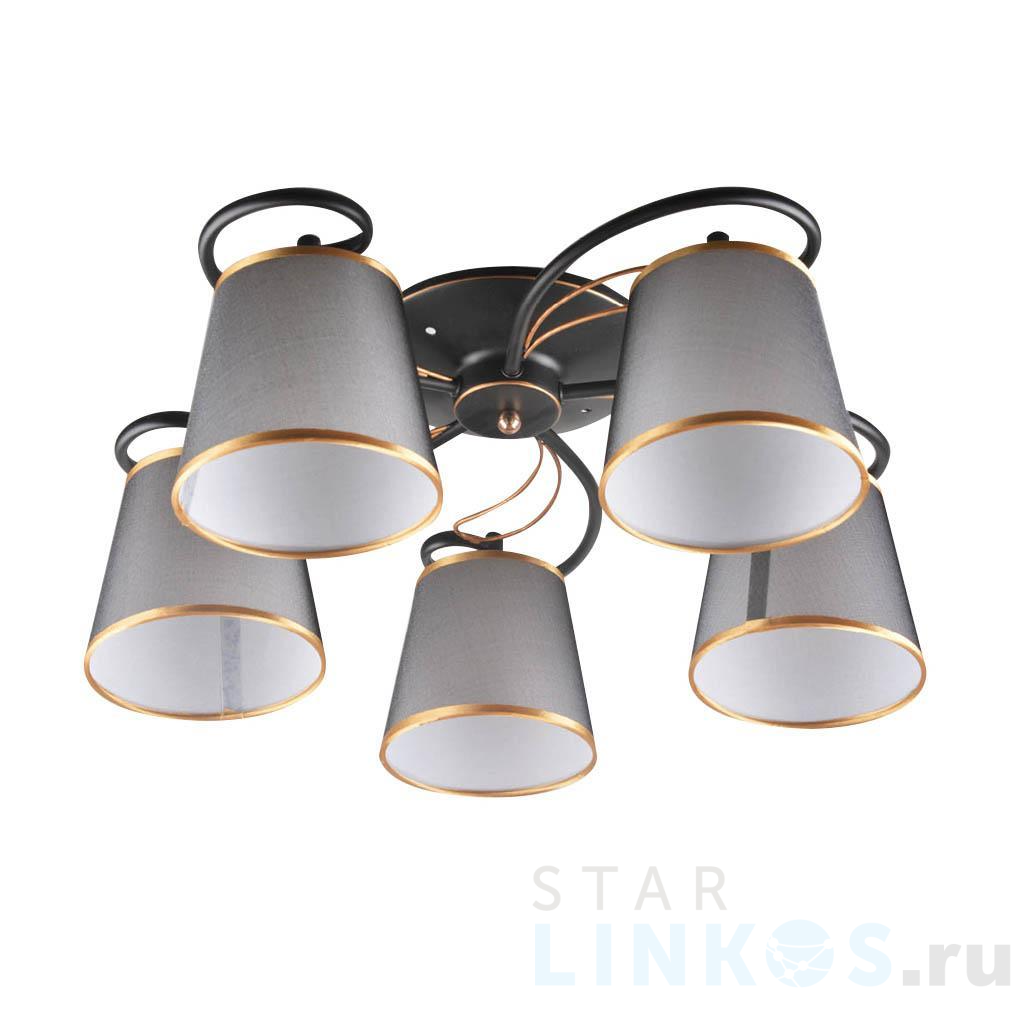 Поставщик рекомендует использовать лампы накаливания с цоколем E27 для освещения площади 16,7 м2. Потолочная люстра Hiper Nataly H055-5 в используется в интерьере спальни с установкой на потолок.