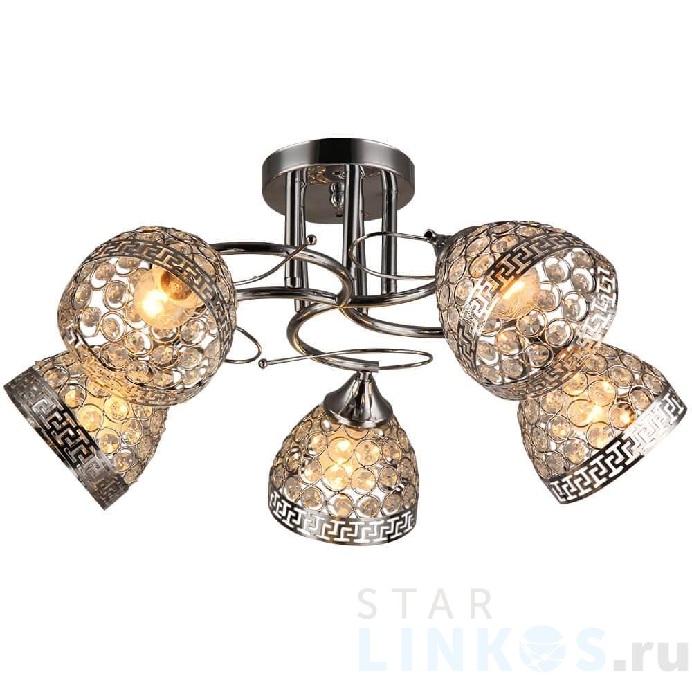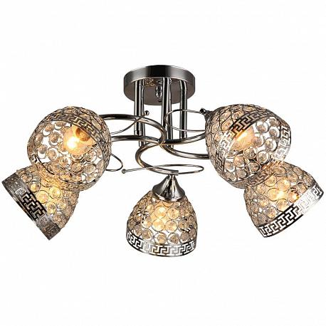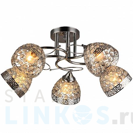 Поставщик рекомендует использовать лампы накаливания с цоколем E27 для освещения площади 16,7 м2. Потолочная люстра Hiper Tomelloso H127-5 в используется в интерьере спальни с установкой на потолок.