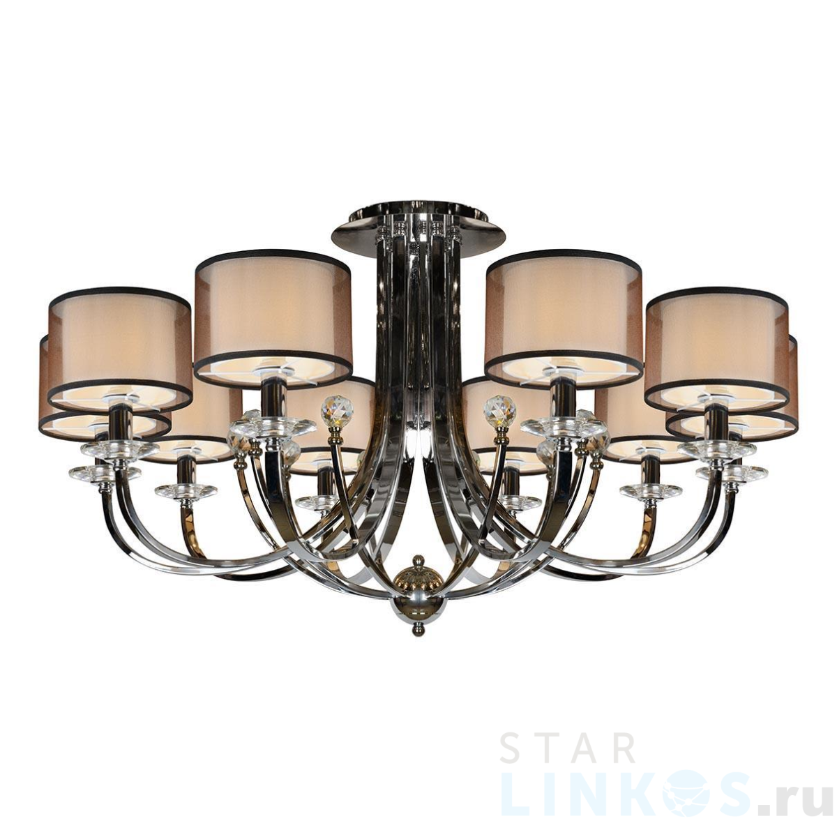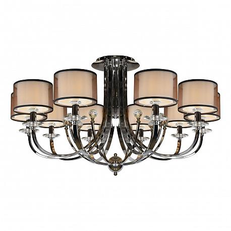 Поставщик рекомендует использовать лампы накаливания с цоколем E14 для освещения площади 22,2 м2. Потолочная люстра iLamp America 88049/10 CR в стиле арт-деко используется в интерьере гостиной с установкой на потолок.