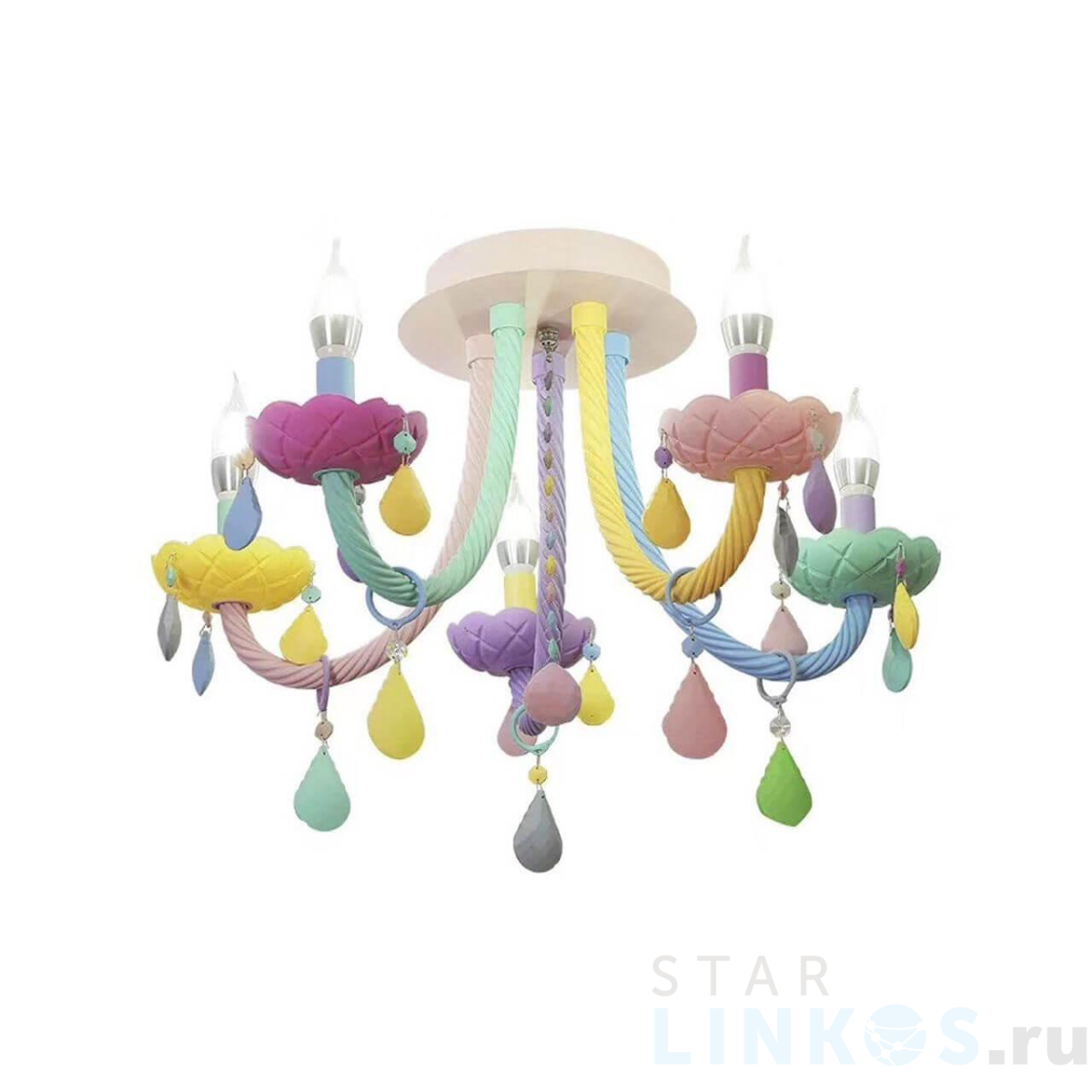 Поставщик рекомендует использовать лампы накаливания с цоколем E14. Потолочная люстра Kink Light Астрид 074175-5 в современном стиле используется в интерьере детской с установкой на потолок.