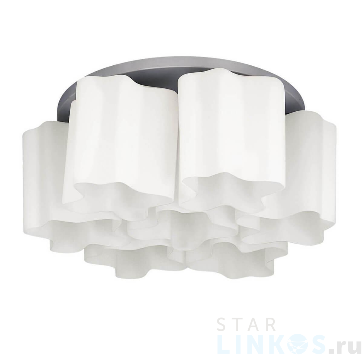 Поставщик рекомендует использовать лампы накаливания с цоколем E27 для освещения площади 15,6 м2. Потолочная люстра Lightstar Nubi 802070 в стиле арт-деко используется в интерьере гостиной с установкой на потолок.